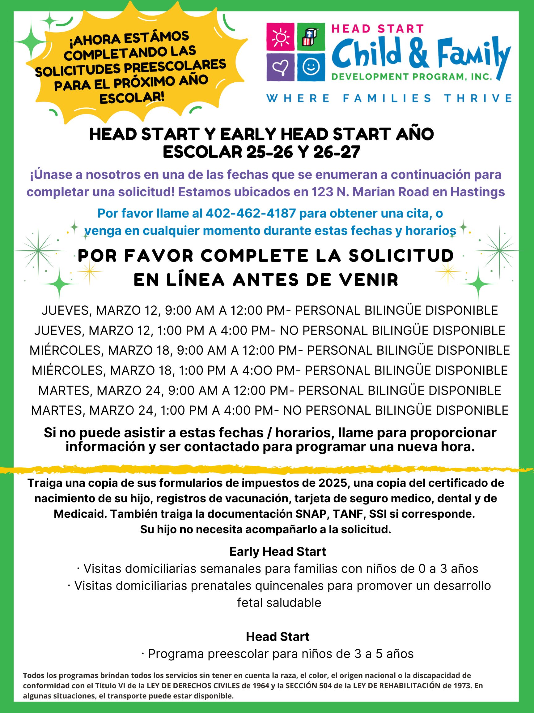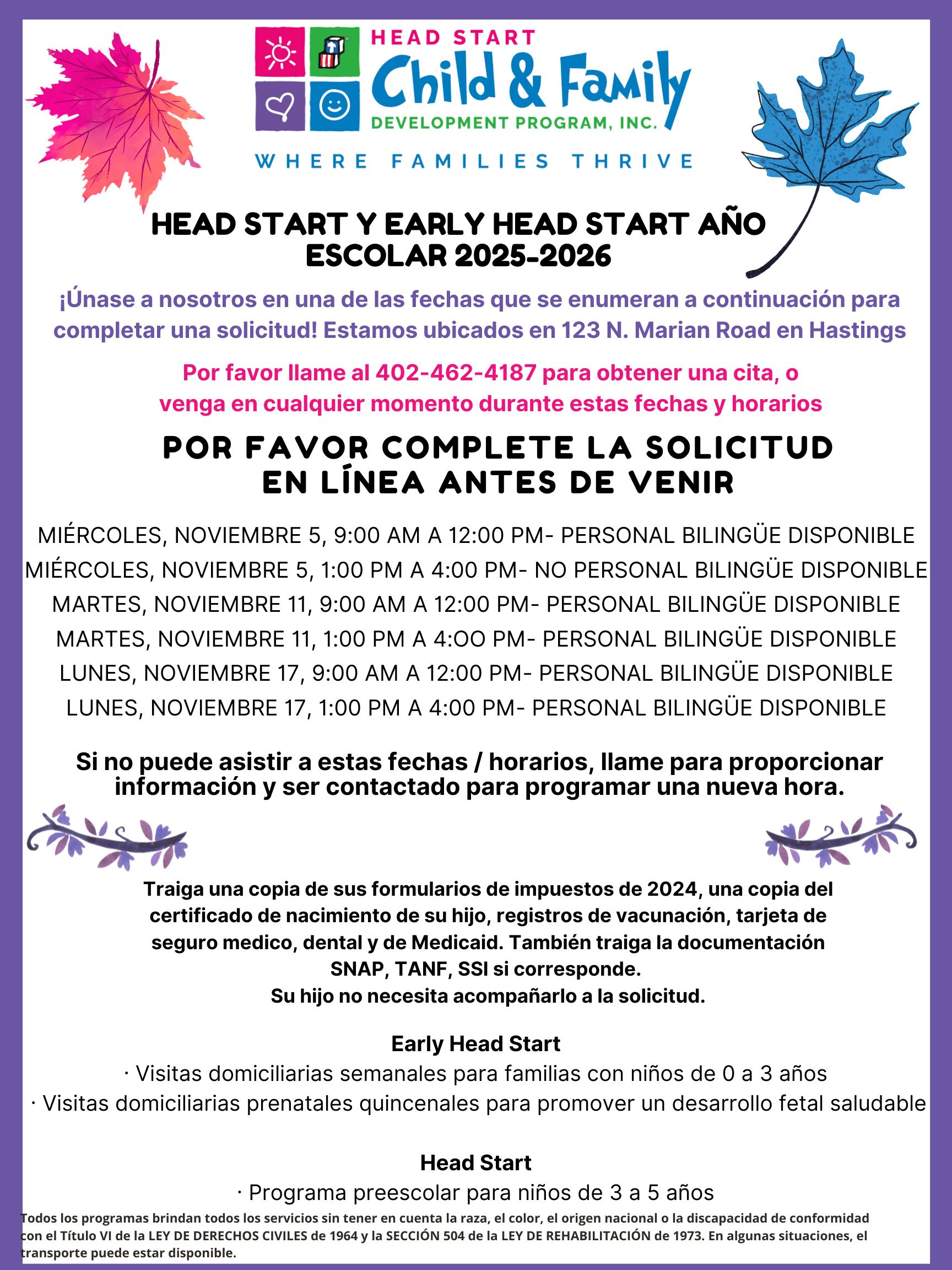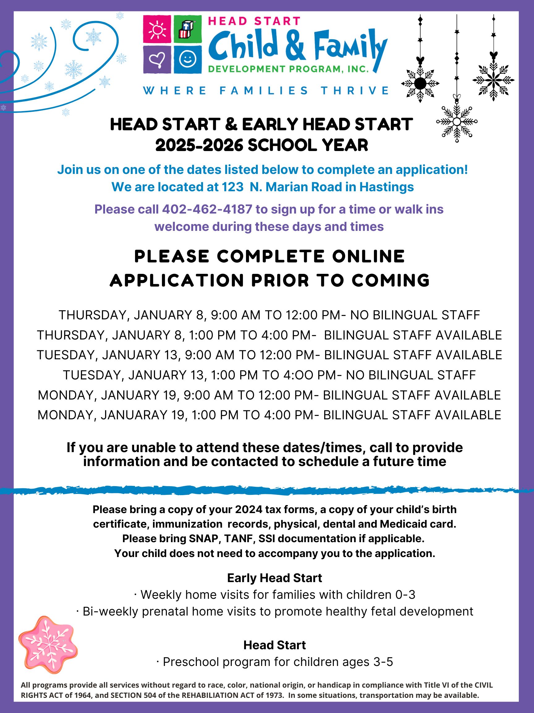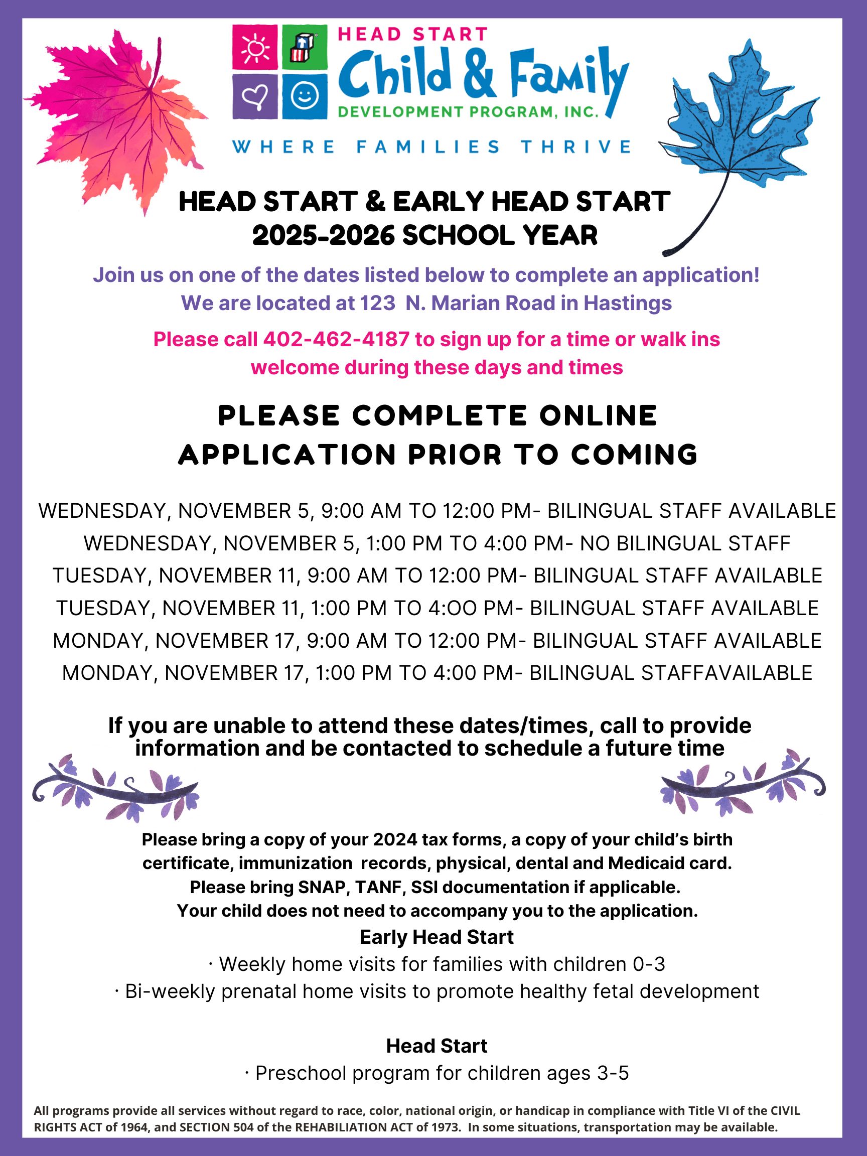 Come see us at our Hastings location to complete an application for your preschool children ages 3-5! You can also fill out an Early Head Start application for prenatal moms and children ages birth-3. We would love to meet your family and start the process of giving your child a Head Start! ![]()